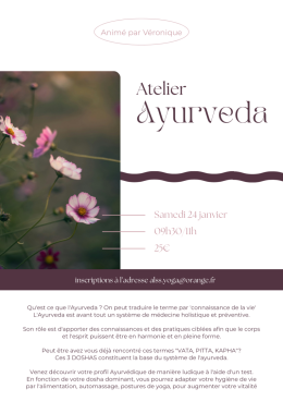 En fonction de votre dosha dominant, vous pourrez adapter votre hygiène de vie par l'alimentation, automassage, postures de yoga, pour augmenter votre vitalité