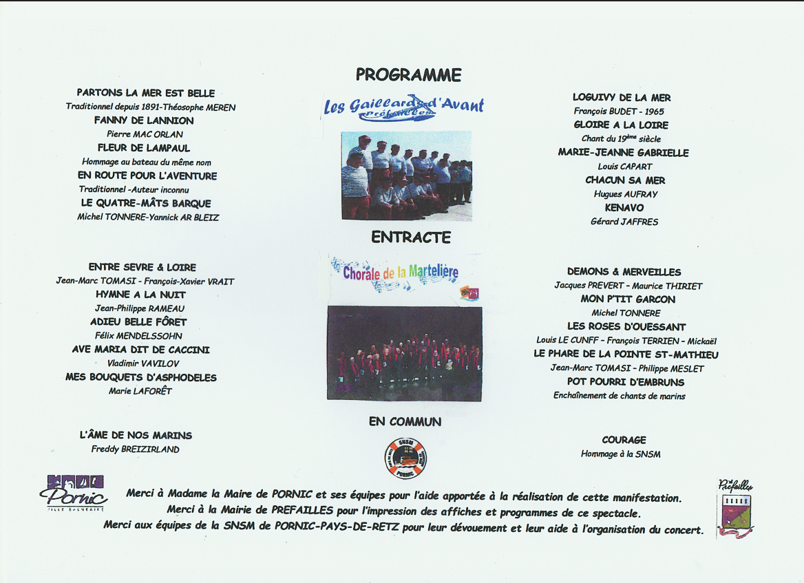 Le dimanche 11 janvier 2026, notre chorale accueillera les Gaillards d’Avant de Préfailles pour un grand concert caritatif au profit de la SNSM Pornic – Pays de Retz.