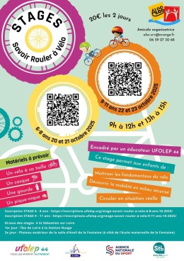 En association avec l'UFOLEP 44, l'ALSS organise des stages "Savoir Rouler à Vélo" pour les enfants de six à onze ans. Ils sont accessibles aux non adhérents et ont comme objectif l'apprentissage du vélo pour amener du déplacement en toute autonomie.